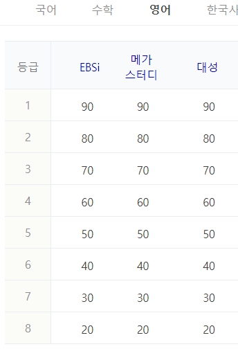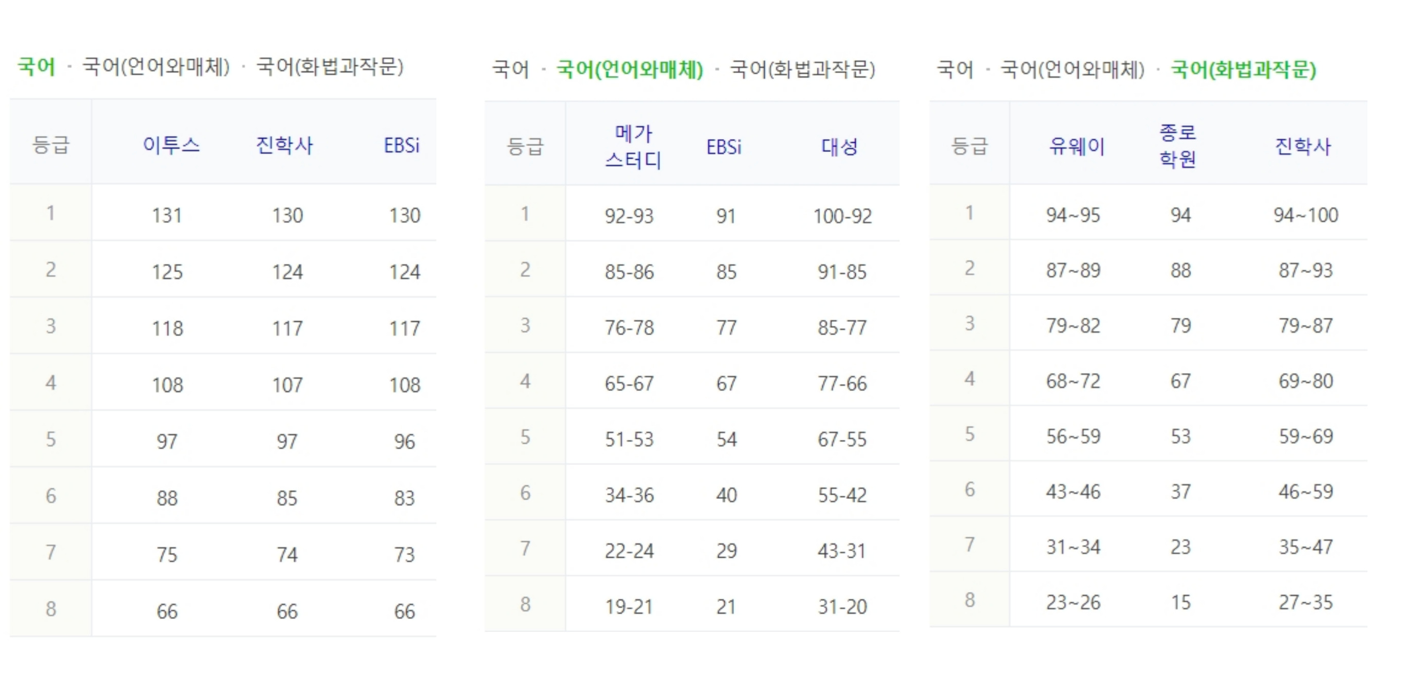 먼저 국어과목 등급컷 살펴보겠습니다.